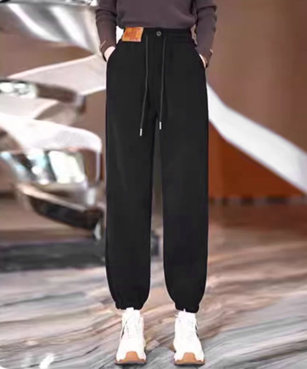 暖かい 裏起毛パンツ ウエストゴム 防風防寒 ハイウエスト裏ボアパンツ 裾ゴム ジョガーパンツ イージーパンツ あったか