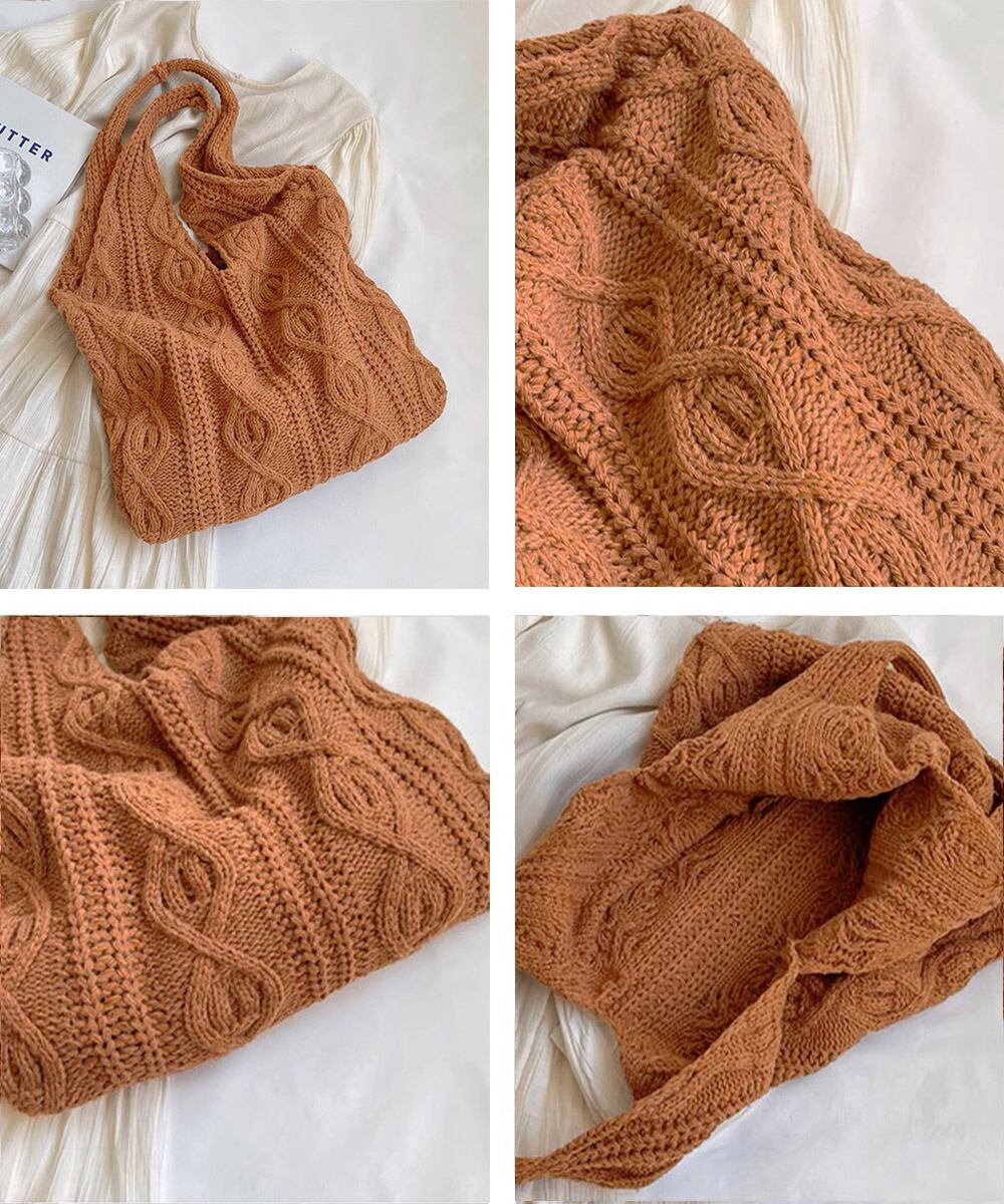 持つだけでこなれ感のあるケーブル編みニット生地のトートバッグ