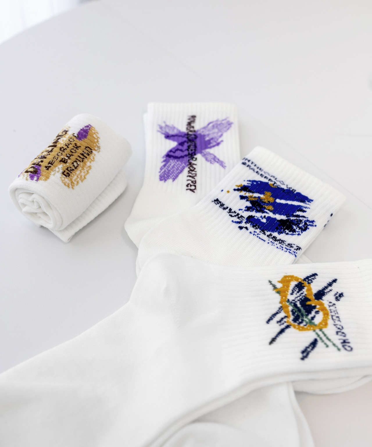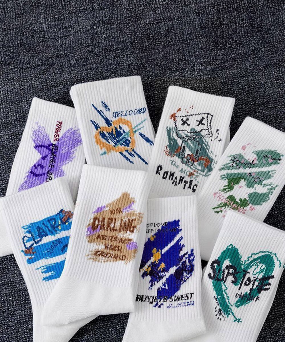 カラフルイラストが大人可愛い、ワンポイント付き白ソックスがお得な8点セット