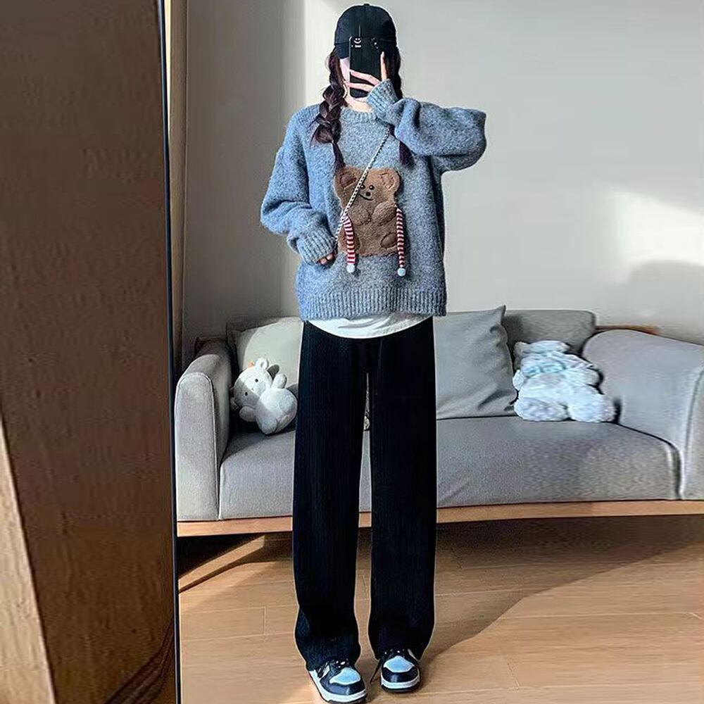 ワイドパンツ レディース韓国ニットパンツ