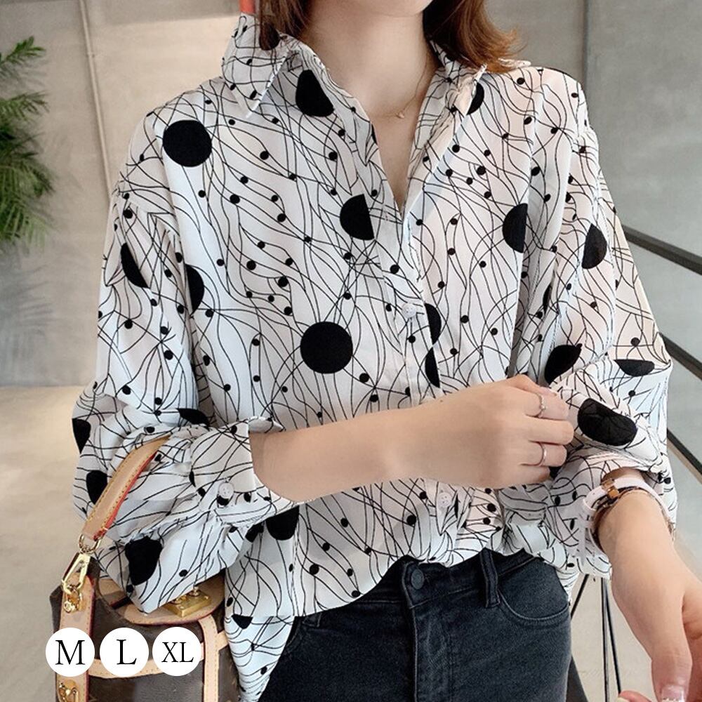 ブラウス 柄シャツ レトロ レディース おしゃれ 幾何学プリント 長袖 トップス 夏春秋 オフィス シフォンブラウス