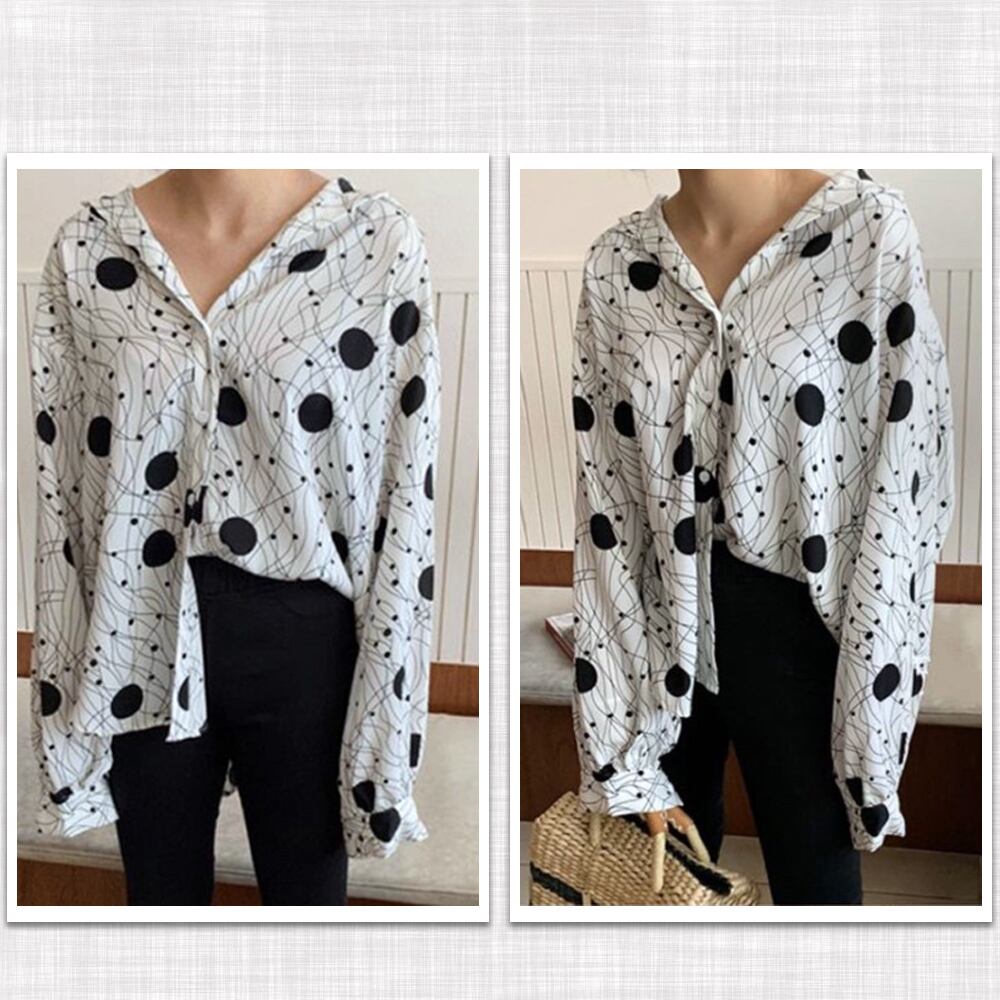 体型カバートップス プリント ブラウス 薄手 カジュアル