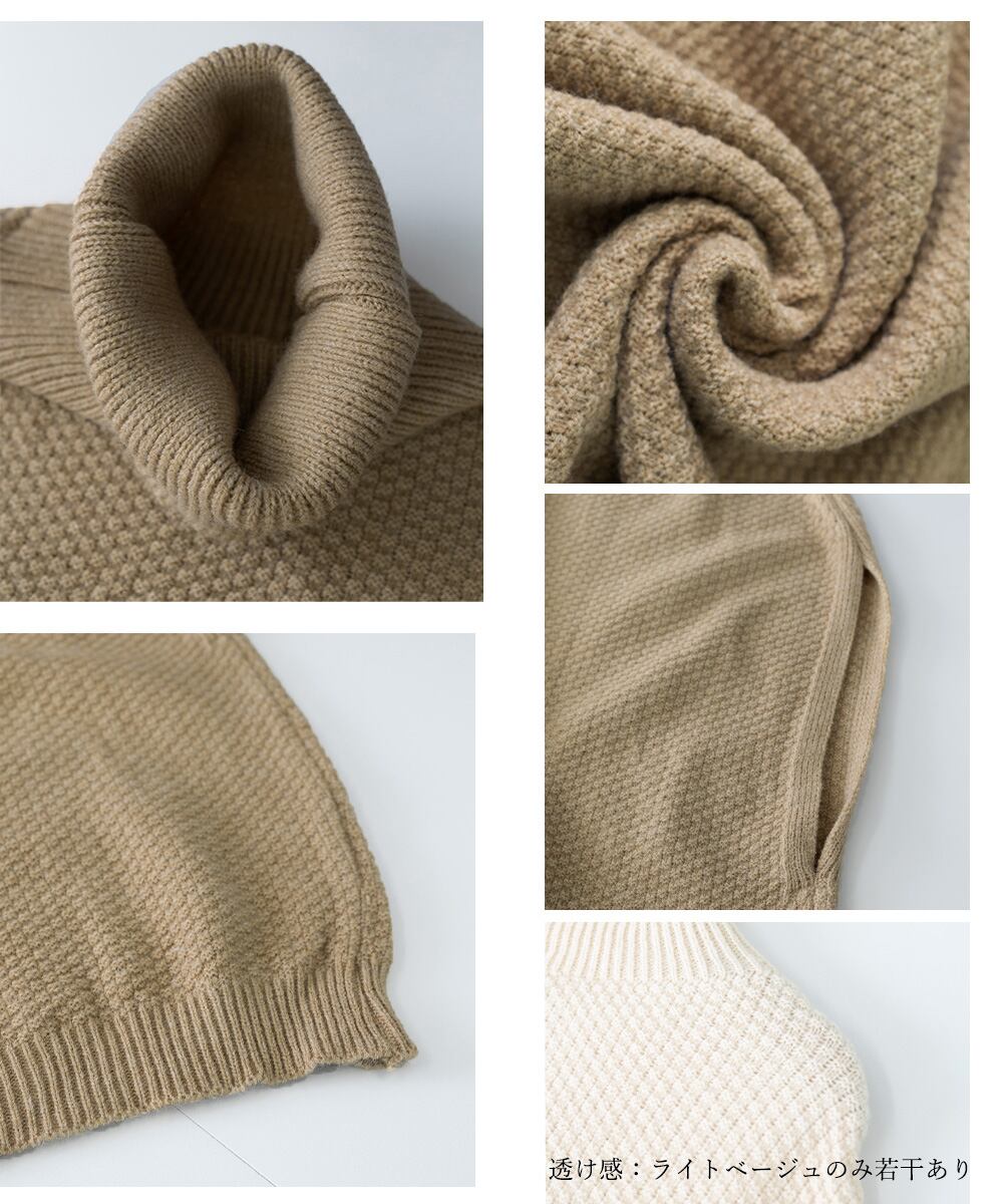 ニットトップス ノースリーブ 体型カバー ハイネックニット ゆったり レイヤード ニットジレ 重ね着ニットカットソー