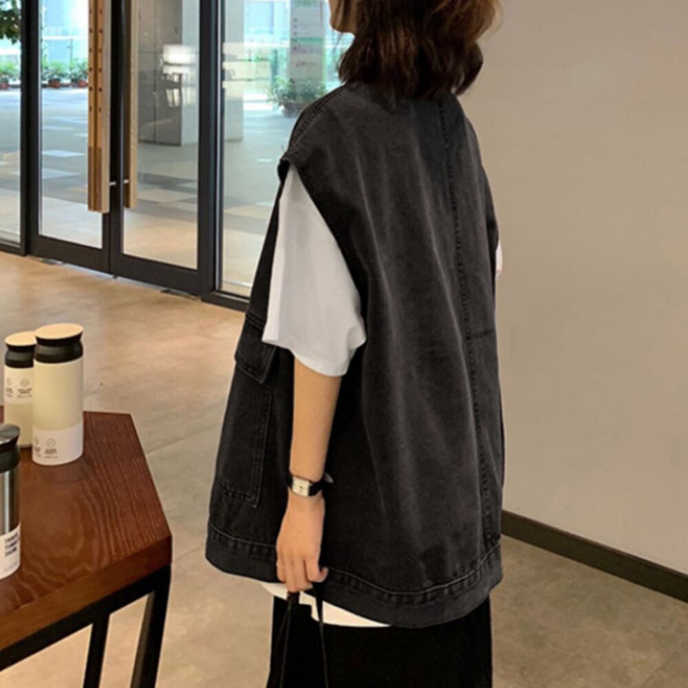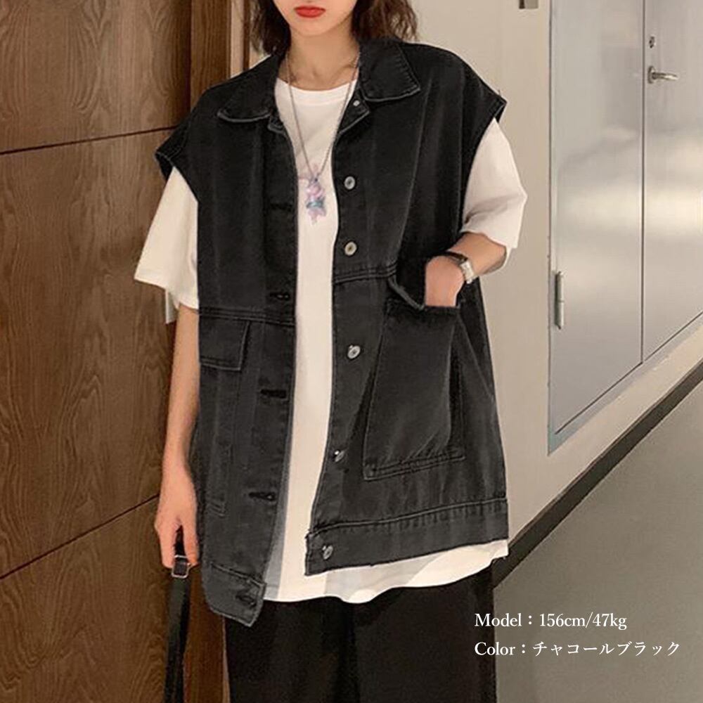 デニムチョッキ韓国 デニム羽織ゆったり ジーンスベスト大人