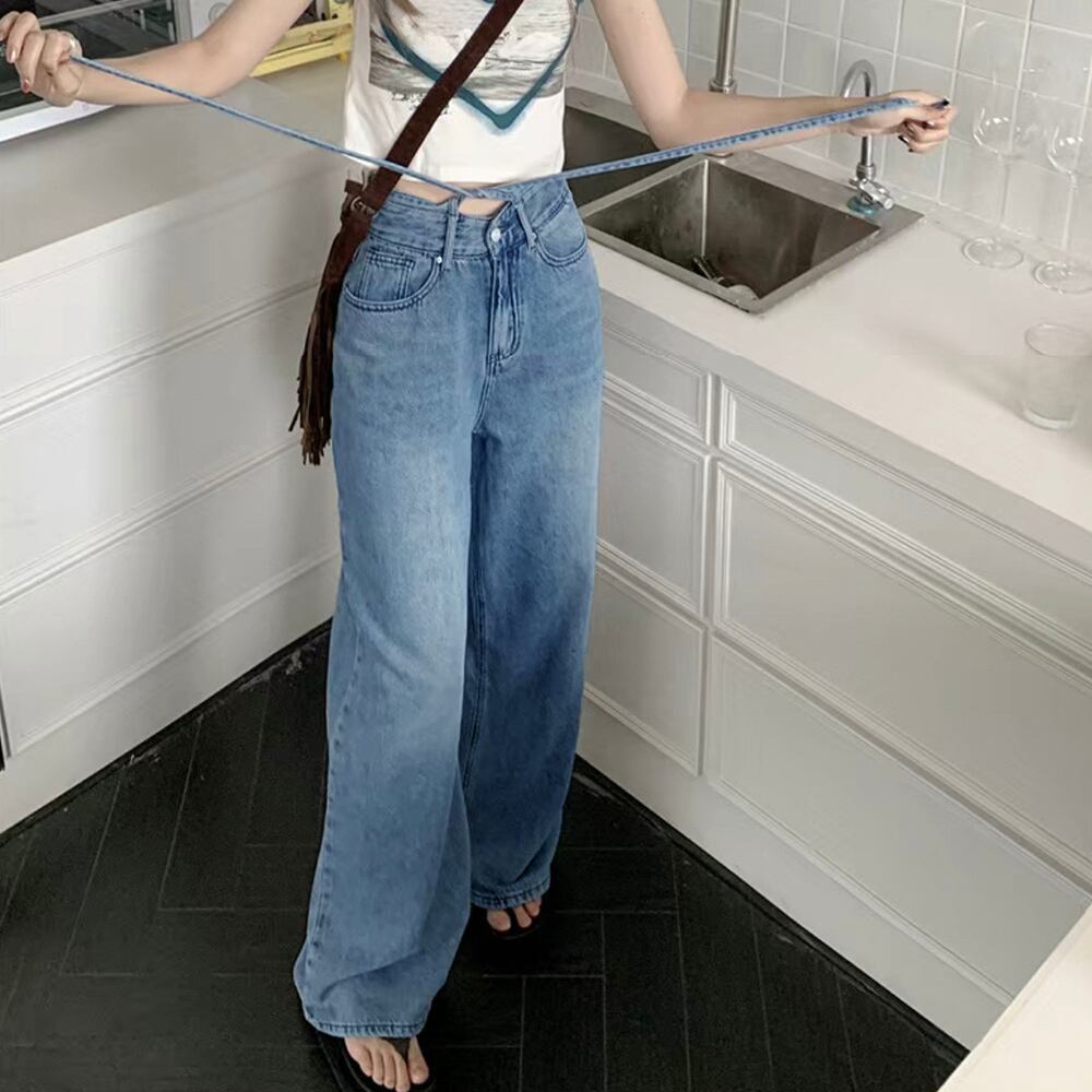 ストリングデニム ワイドパンツ トレロ ゆったり ハイウエストパンツウエストクロス 美脚カジュアル ストレートジーンズ