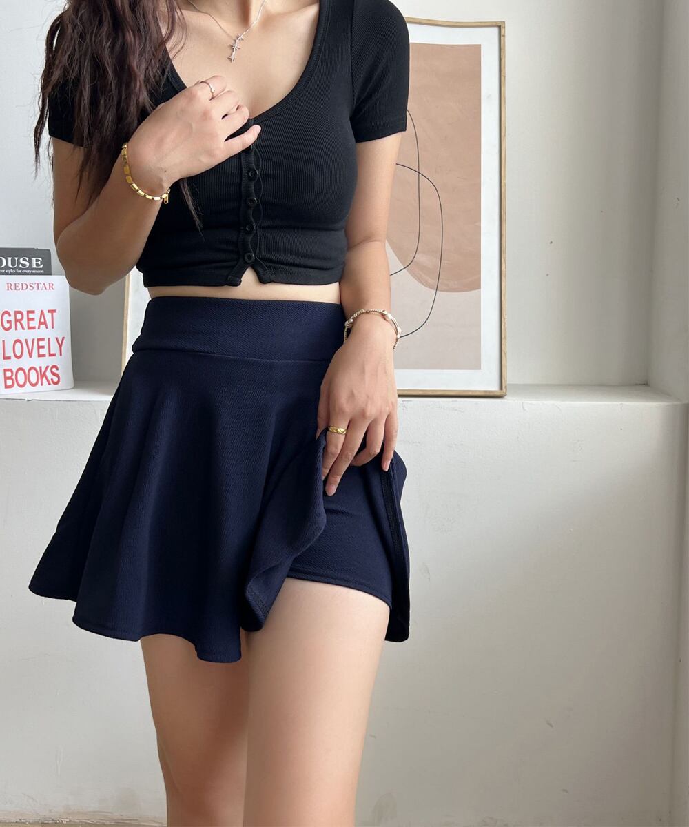着やせ美脚ボトムス ミニスカパン 脚長 可愛い膝上スカート