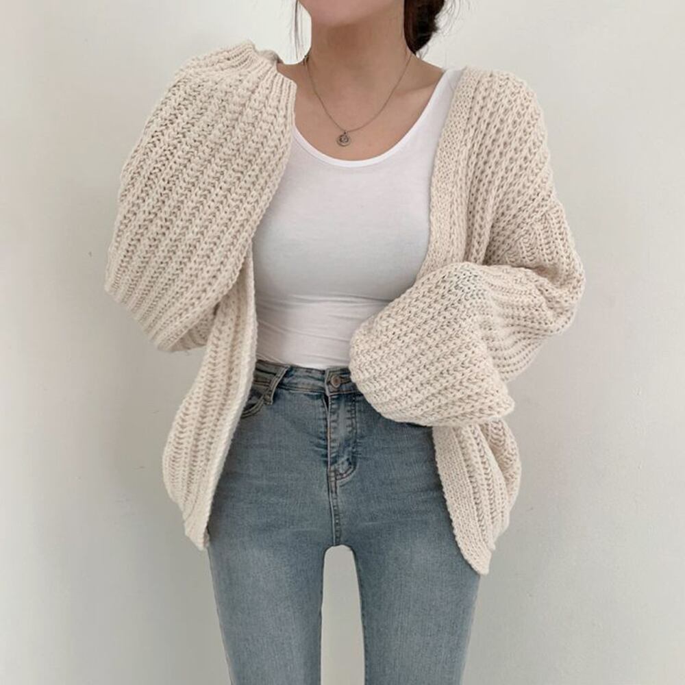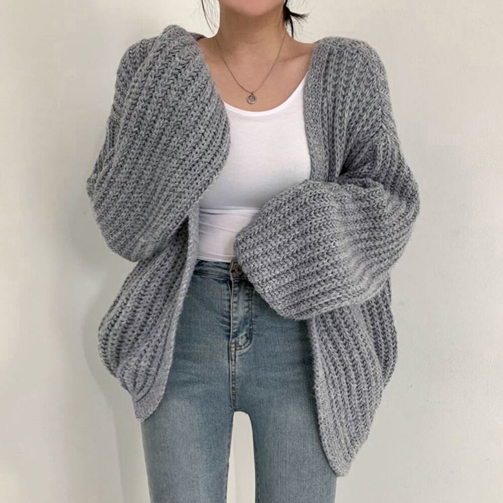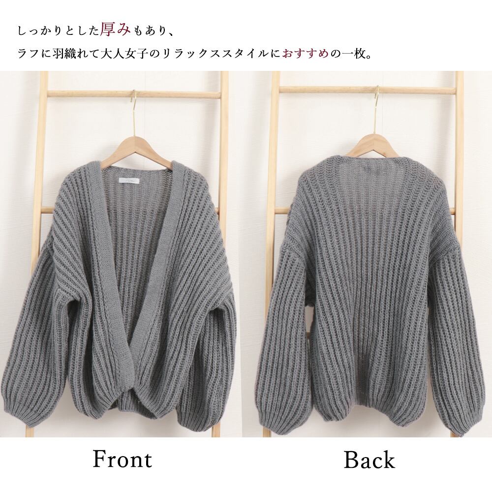 カーディガン 韓国風 ゆるニットトップス 体型カバー ボリューム袖 長袖 ニットアウター 羽織り 春秋服 大人カジュアル