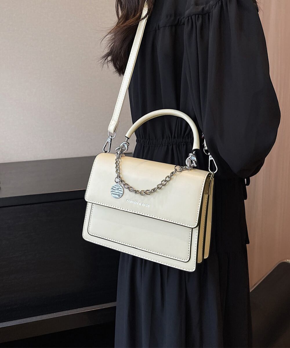 ミニショルダー 大人可愛い ハンドバッグ 小さめ手提げバッグ 2WAY おしゃれ PUレザーかばん チェーンチャーム付き