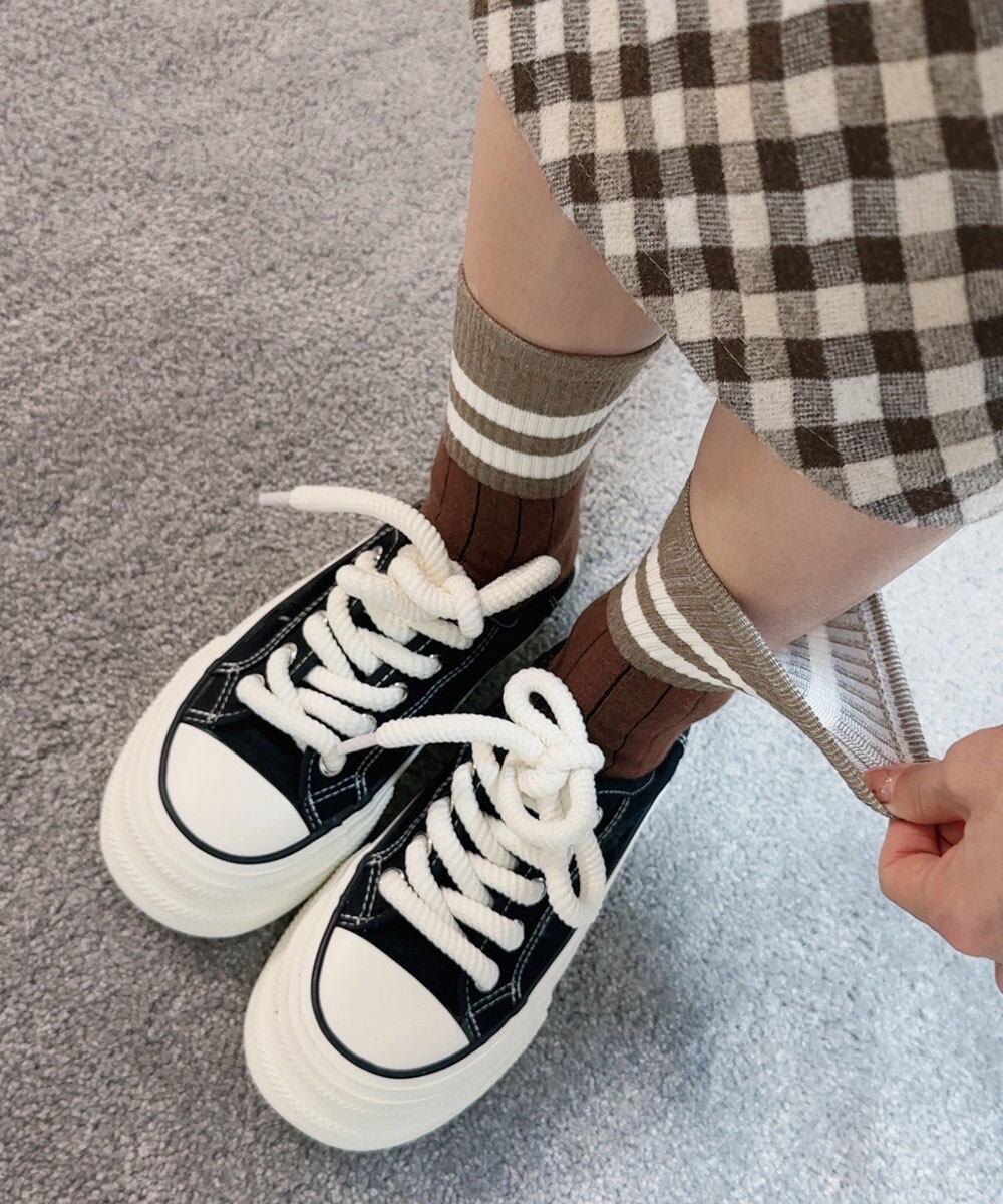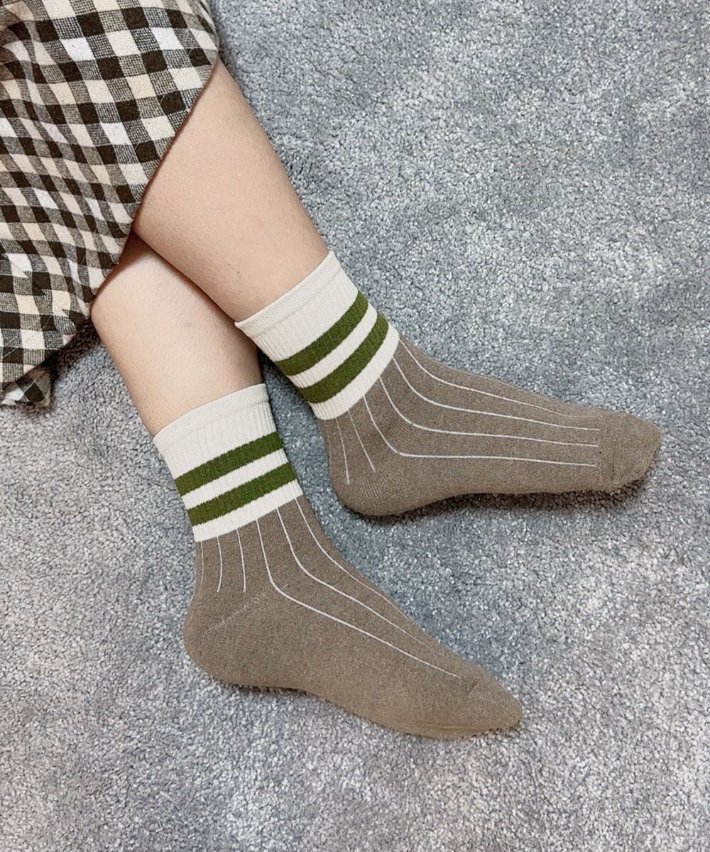ボーダーソックス 蒸れない 韓国ソックス あったか靴下 足元温めるグッズ おしゃれソックス ハイカット スポーツソックス