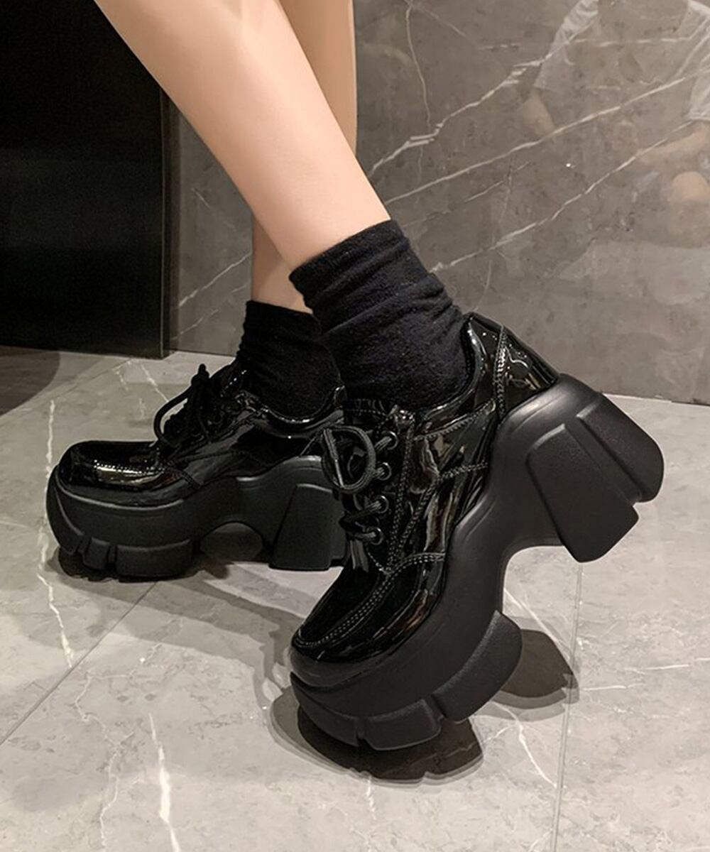 厚底ローファー韓国 レースアップシューズ