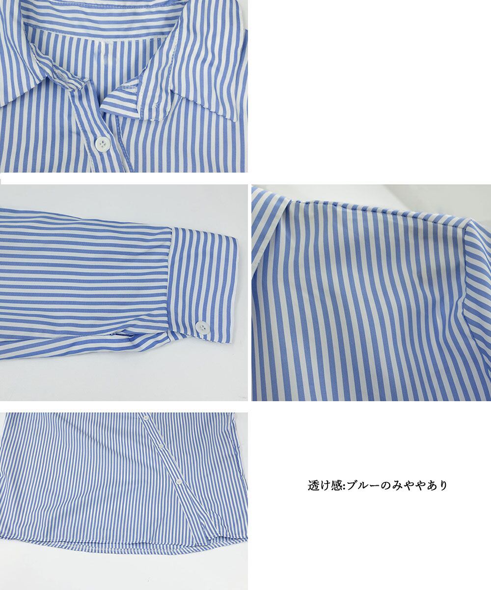 春夏 長袖 ストラップ柄 襟付き 斜めボタン オフィスカジュアル 開襟シャツ おしゃれ 女性 ブラウス着やせ トップス