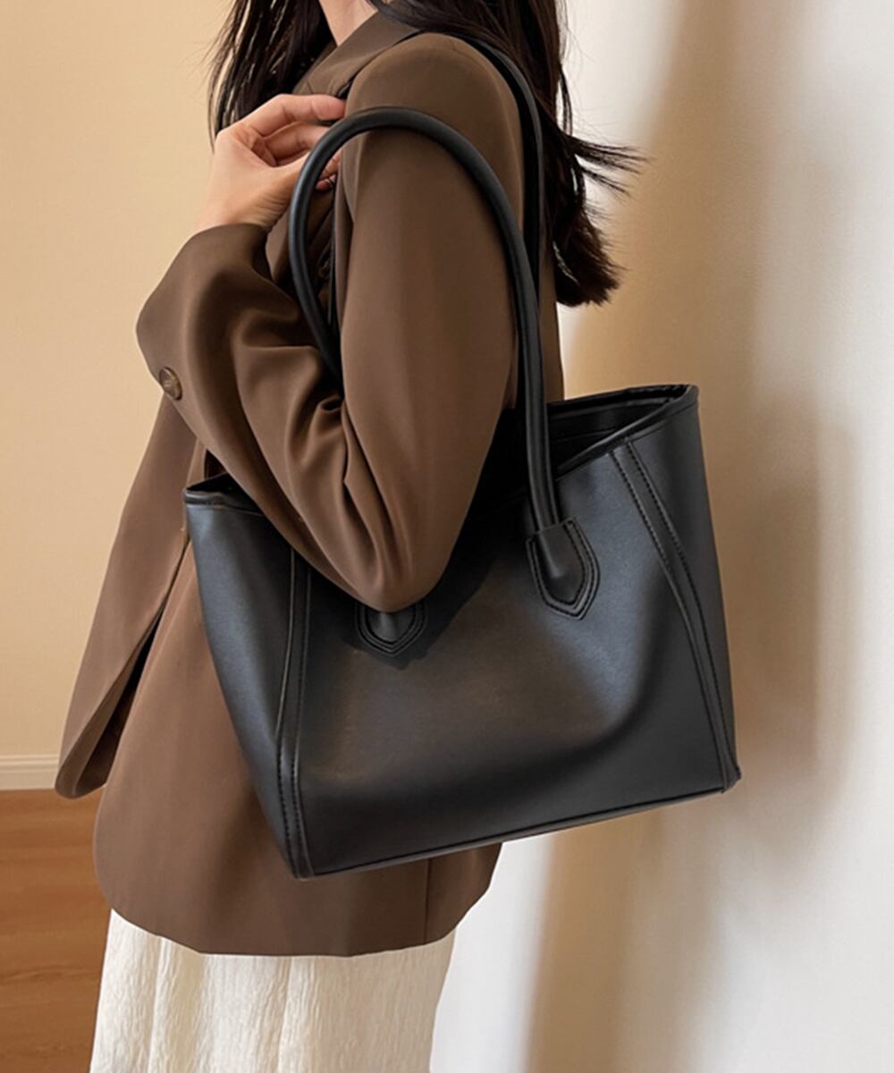 上質なPUレザーを採用し、手触りが良く、見た目も洗練されるトートバッグ