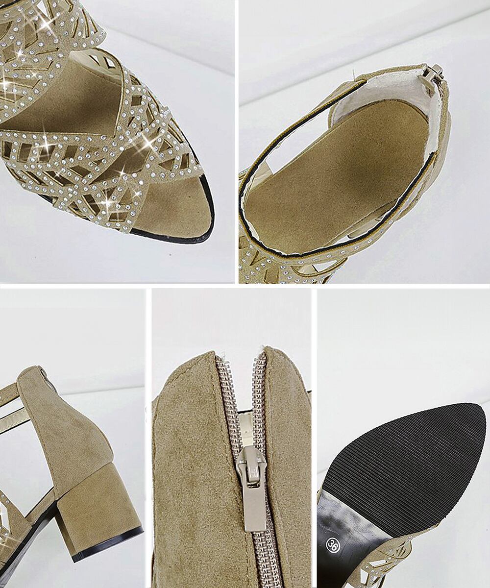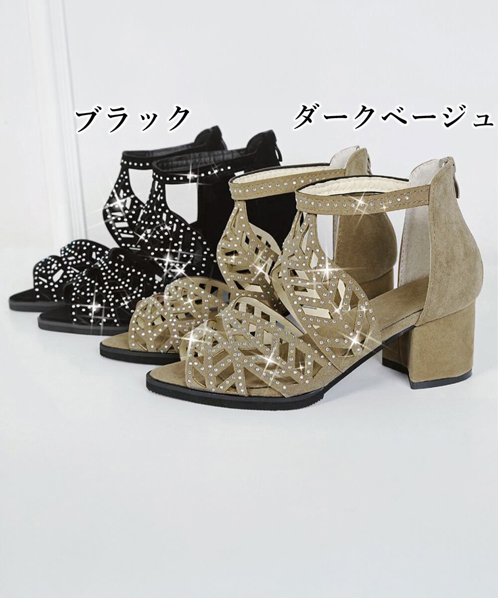チャンキーヒールサンダル 歩きやすい バックジッパー 疲れない 太めヒール サマーブーツサンダル きれいめ キラキラ美脚