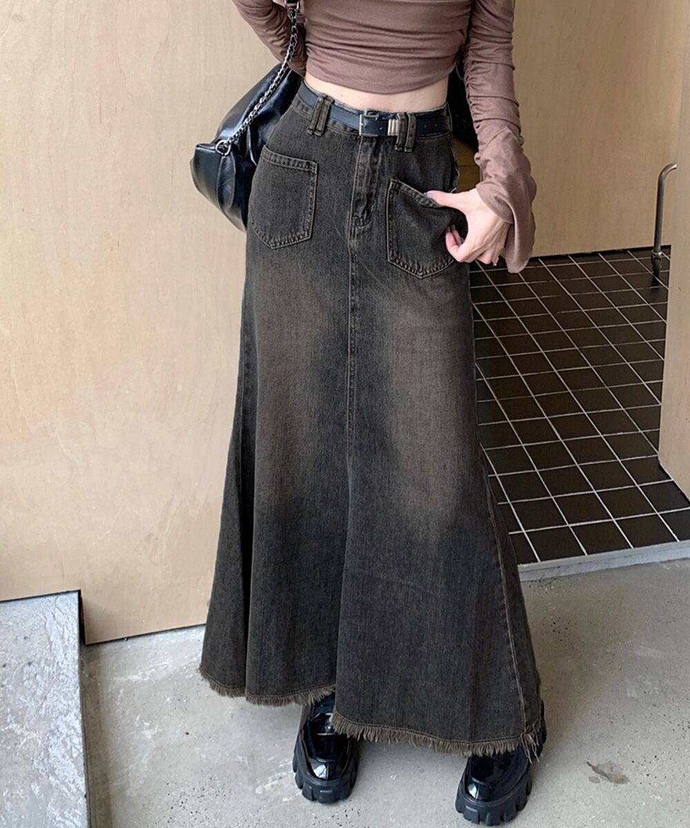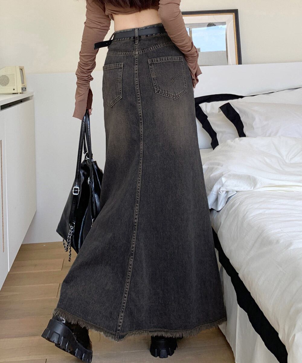 フリンジデニムスカートマーメイドスカート