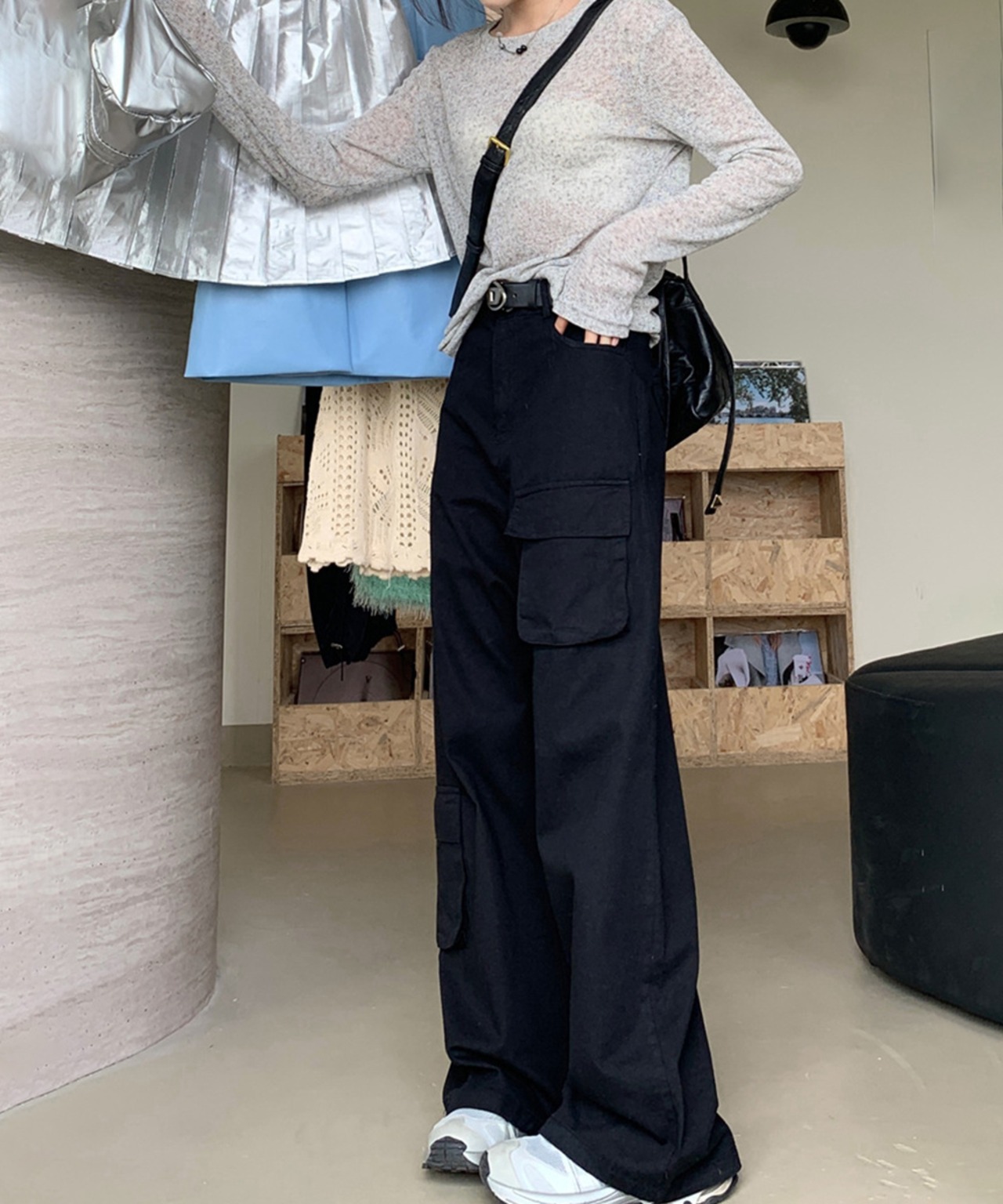 ワイドカーゴパンツ ハイウエスト 韓国風