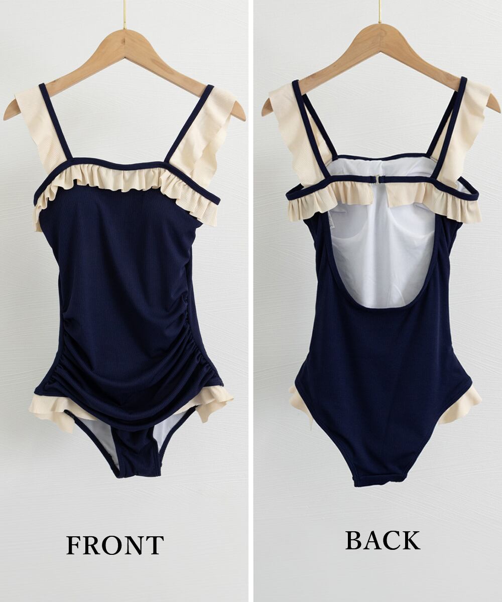 パイピングフリル水着 背中見せ リゾート オトナ女子 セクシー オールインワン水着 海水浴 可愛い 夏海 スイムウェア