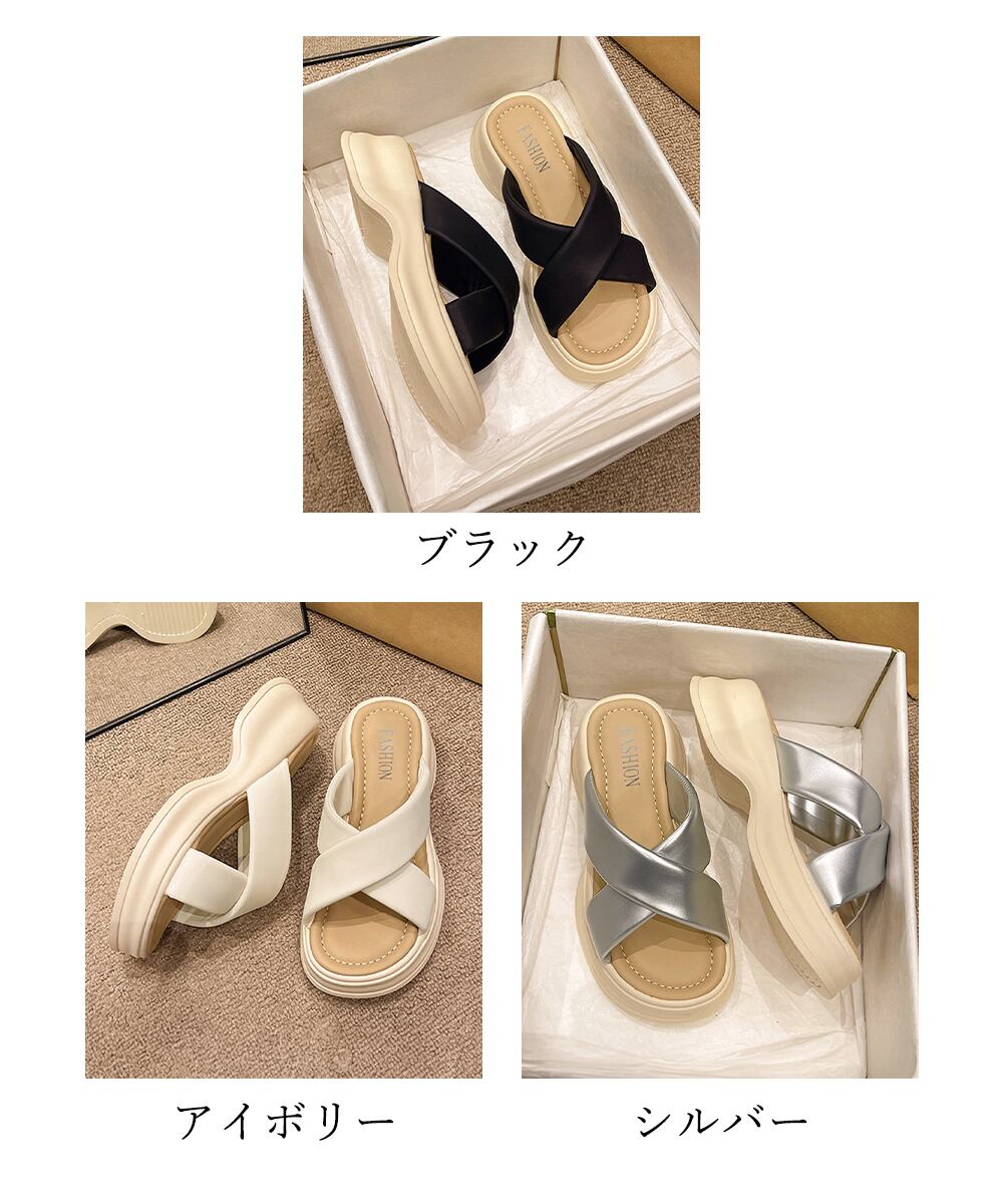 ミュールサンダル コンフォート クロスベルト ボリュームソール オルチャン 歩きやすい 疲れない お洒落