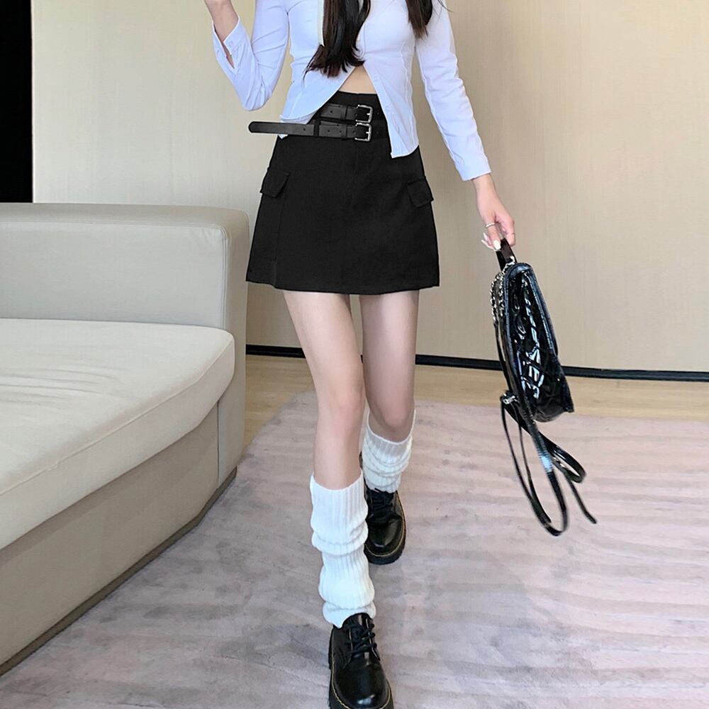 レディース タイトスカート 膝上丈 インナーパンツ付き セクシー ハイウエスト ショートスカート ベルト付き 美脚 韓国