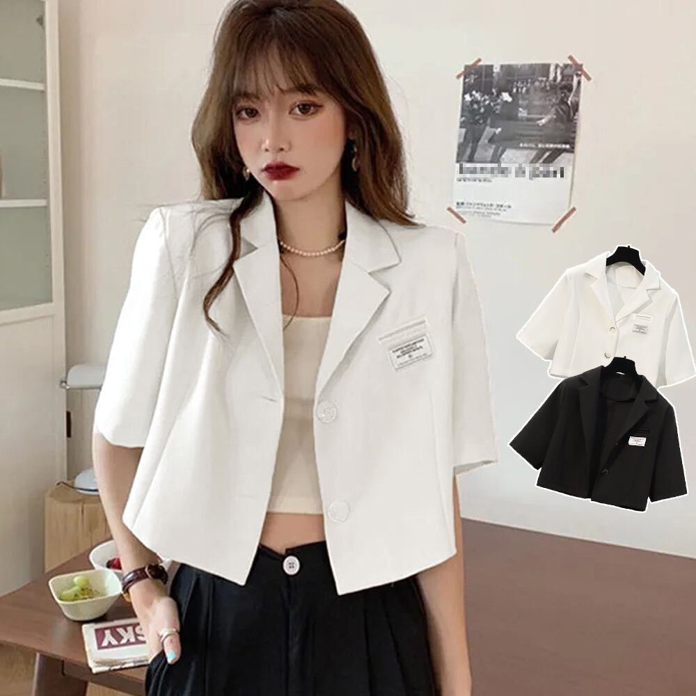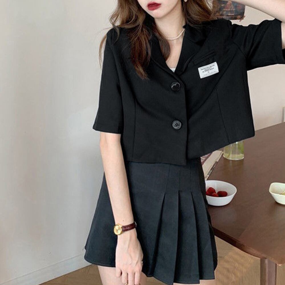 レディース クロップド半袖サマージャケット 通学通勤ジャケットカーディガン 半袖羽織りオフィスカジュアル ライトアウター