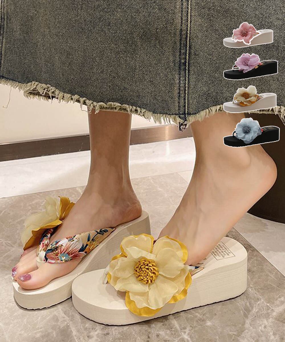 大きな花がアクセントになって足元を華やかに彩るビーチサンダル