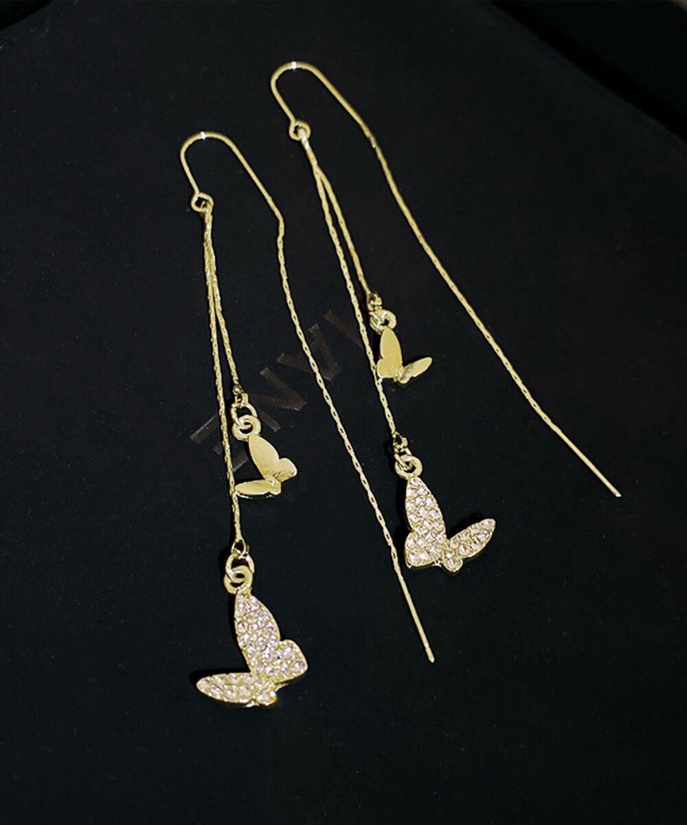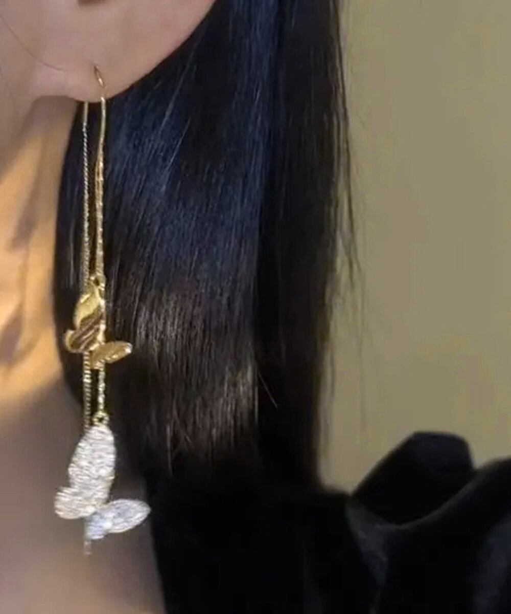 アクセサリー レディース バタフライピアス メタルジュエリー ゴールド 人気ギフト 20代30代 耳飾り チェーンピアス