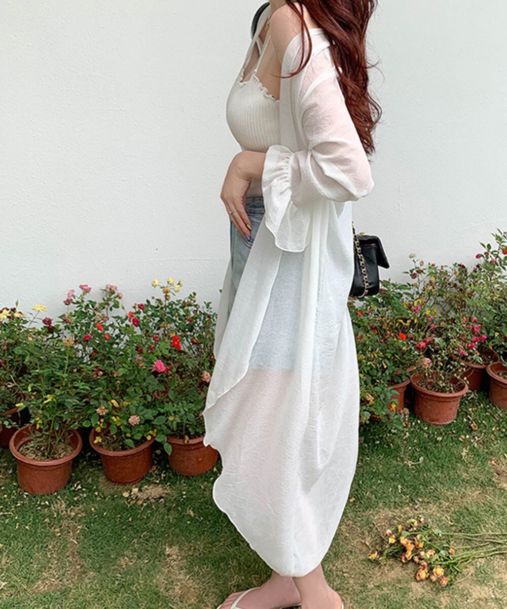 レディース ベルスリーブ 涼しい シースルーカーディガン UV対策 ロングガウン夏 サマーカーディガン 薄手羽織り 無地