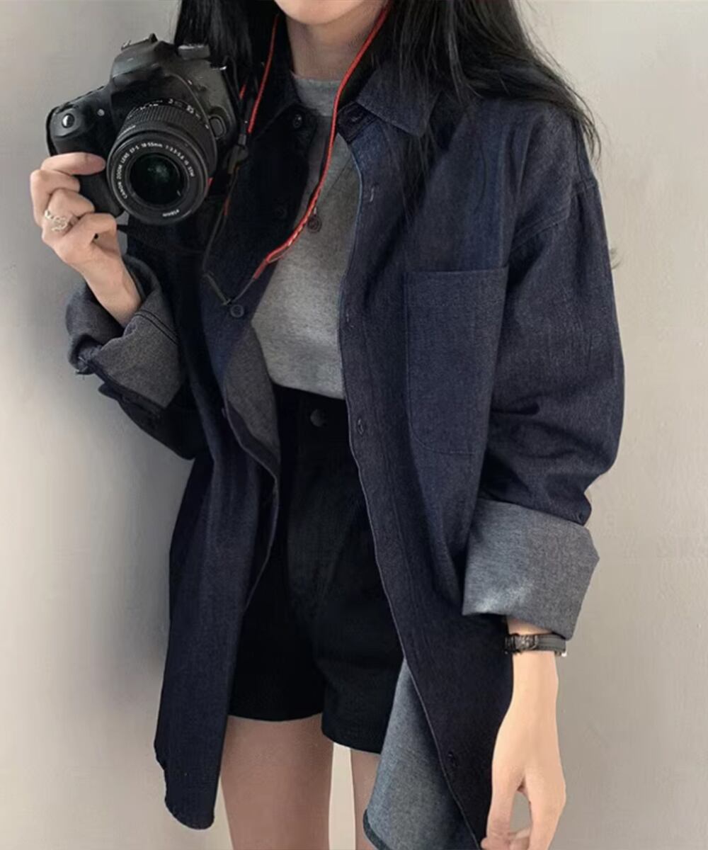 デニムBIGシャツ 羽織り 万能シャツ 韓国風コーデ襟付き