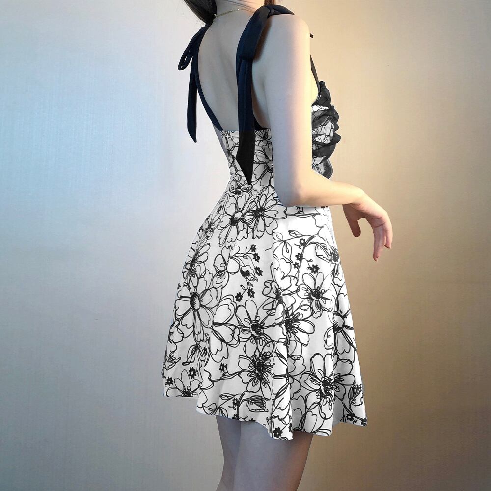 派手な露出を抑えた、洋服感覚で着こなせる花柄ワンピース水着