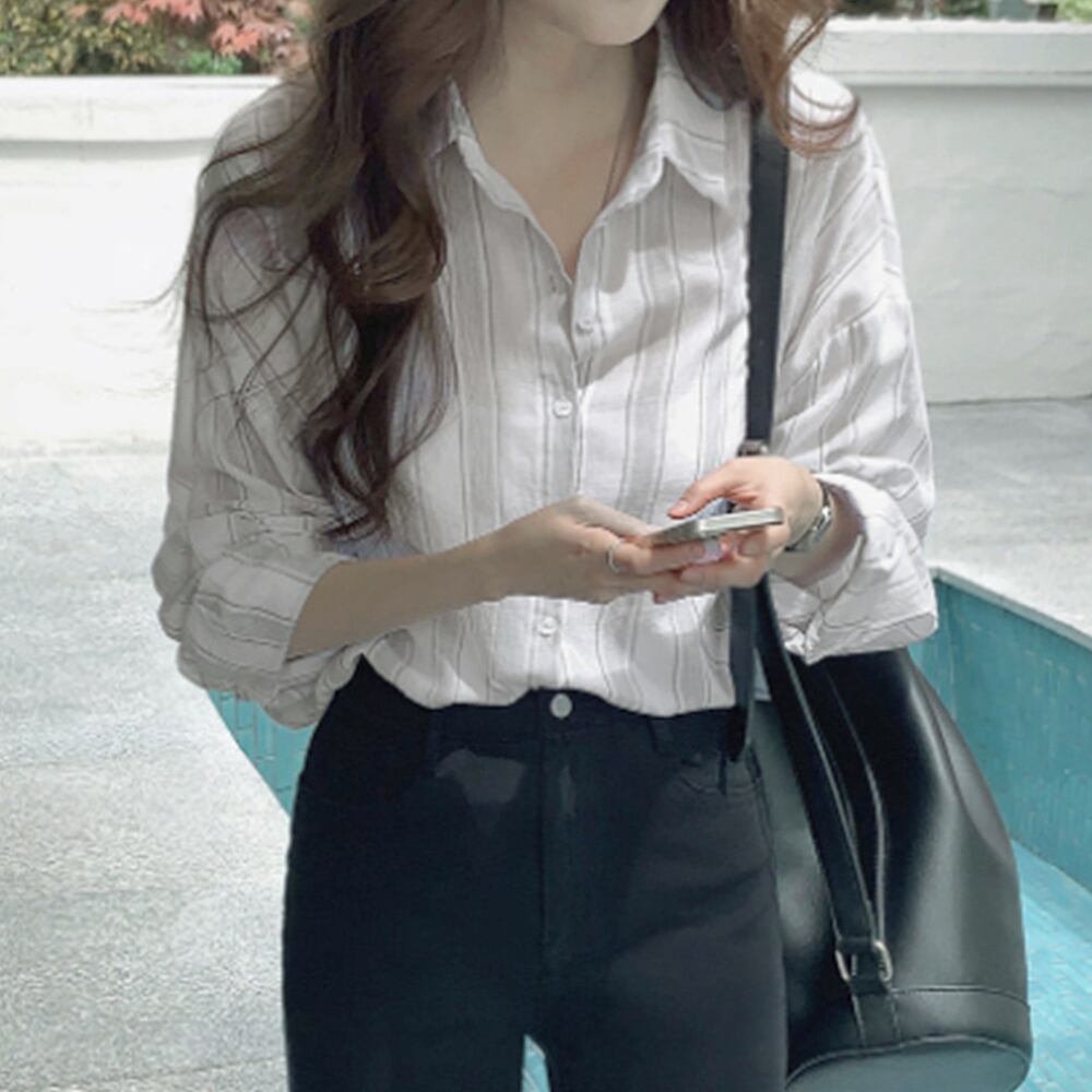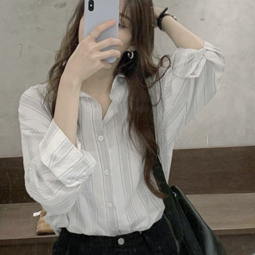 春夏 長袖 シャツカーディガン 大人ブラウス 薄手 カジュアル 羽織り UV対策 ゆったり 着やせ Vネック ストリート