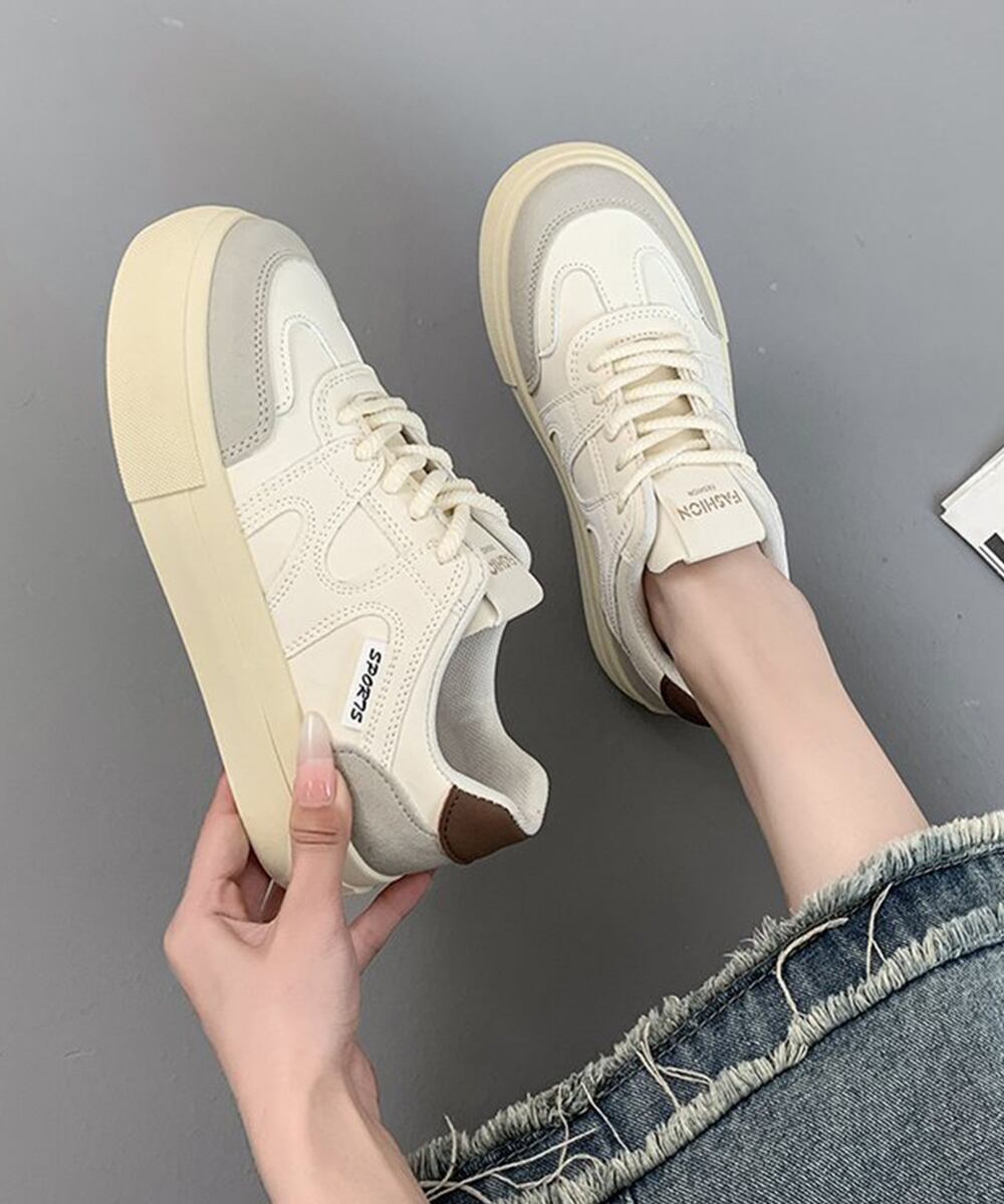 厚底スニーカー レースアップローカット靴