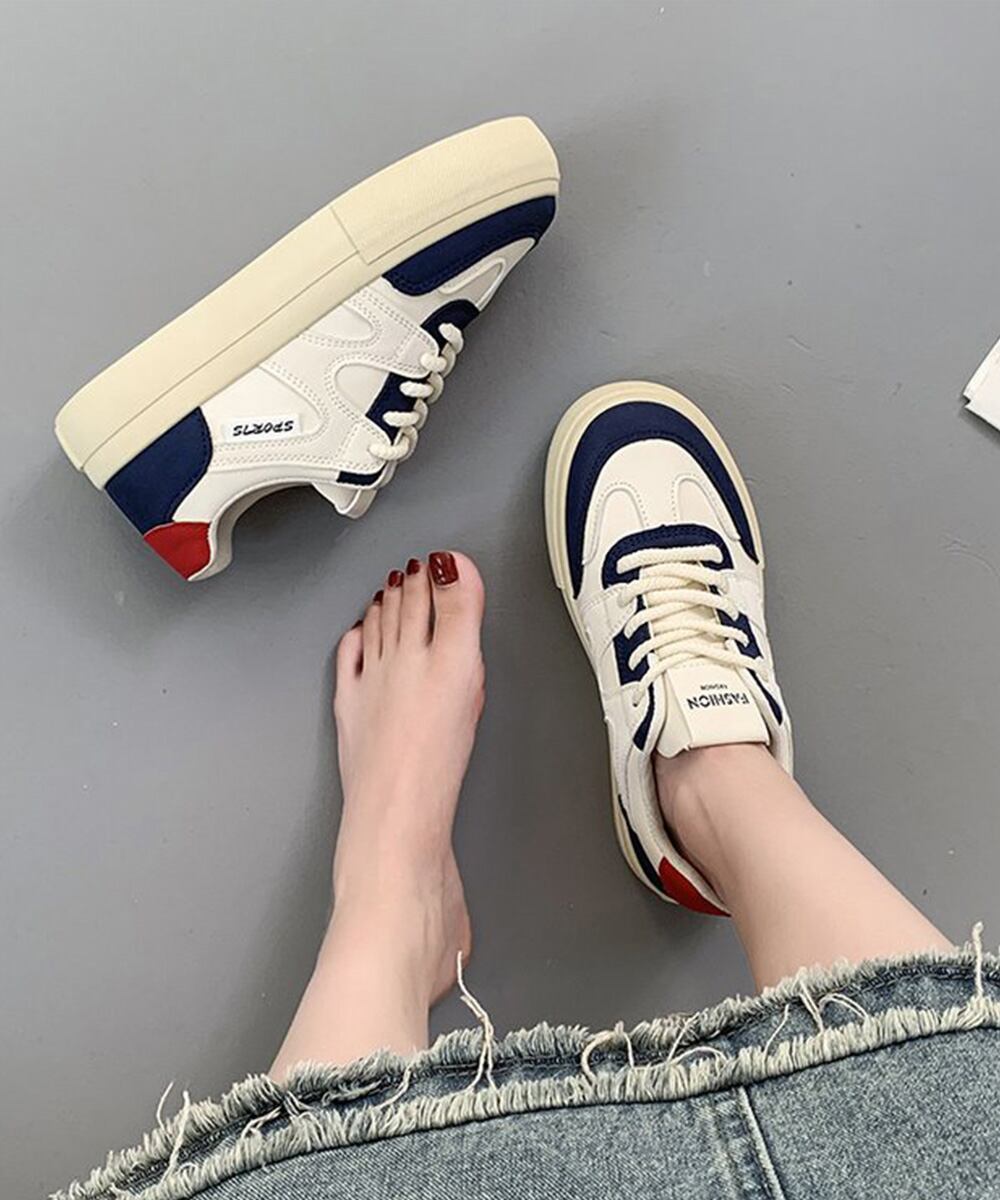 レディース カジュアル フラットシューズ 韓国風 通勤通学シューズ おしゃれ 配色スニーカー 歩きやすい 美脚脚長 くつ