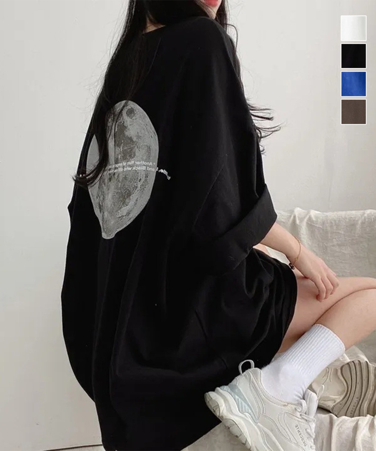 バックに大きく月のデザインがプリントされた、ストリート感たっぷりの半袖Tシャツ