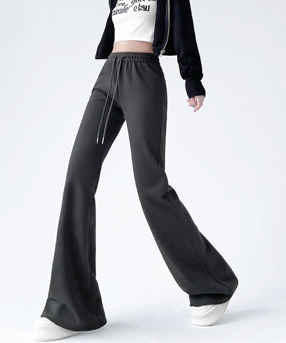 スウェットパンツ ハイウエスト ストレートパンツ 着やせ ウエストゴム オシャレ カジュアル お洒落