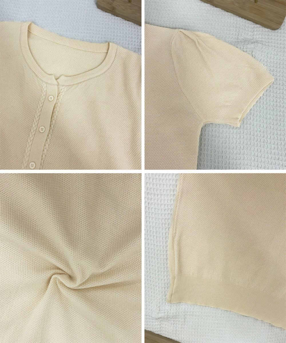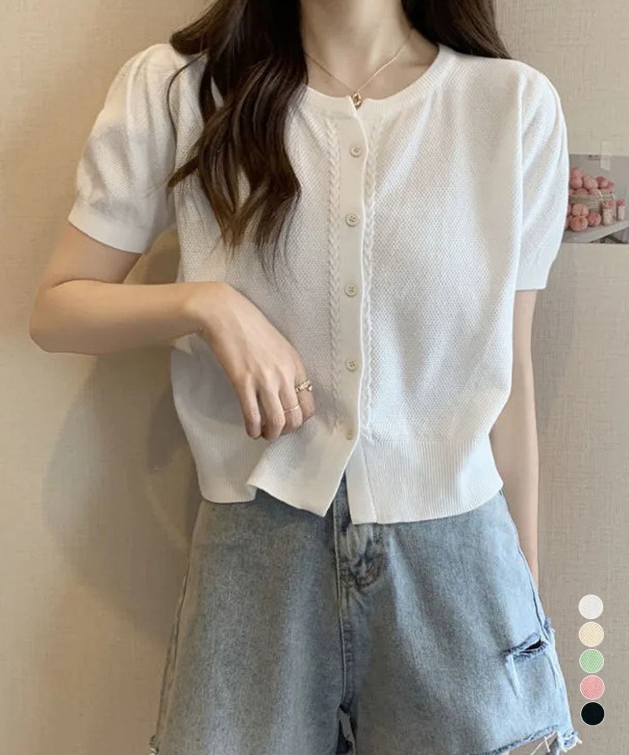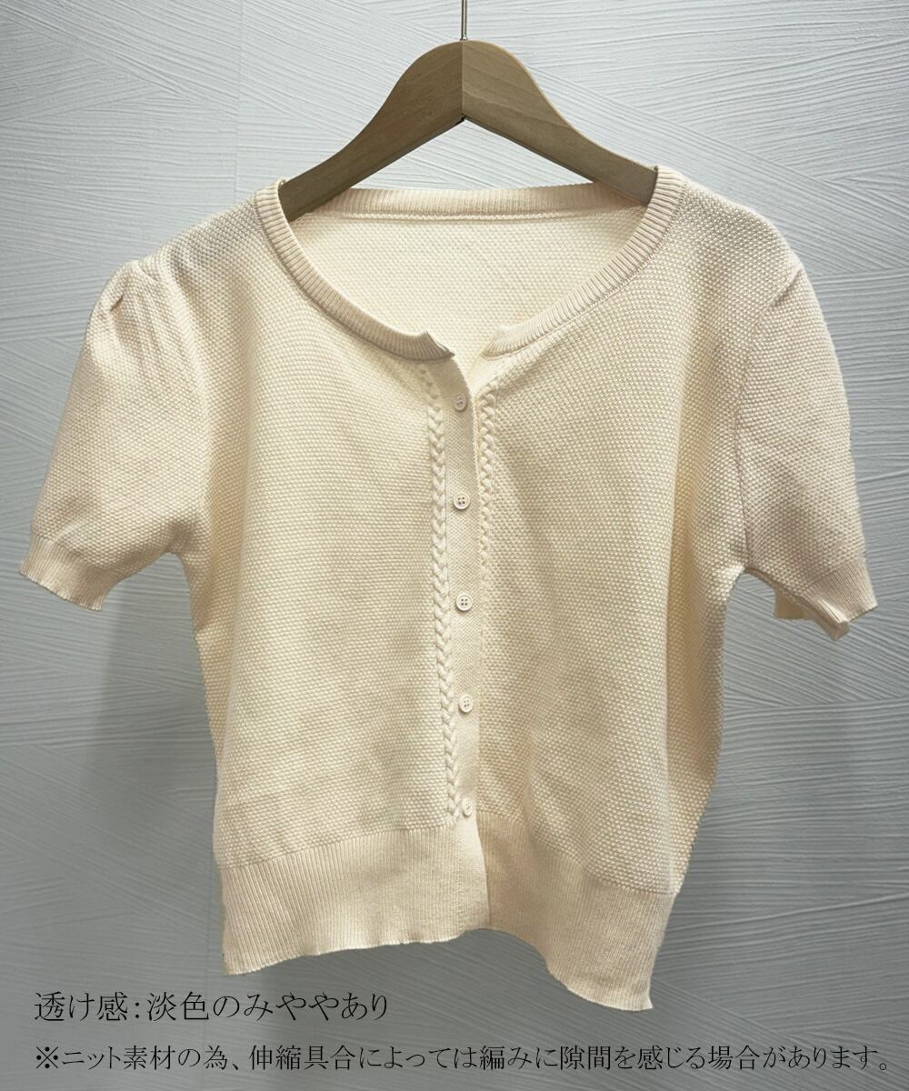 レディース ニットトップス ショート丈 クールネック 薄手 半袖 サマーカーディガン カジュアル オフィス おしゃれ