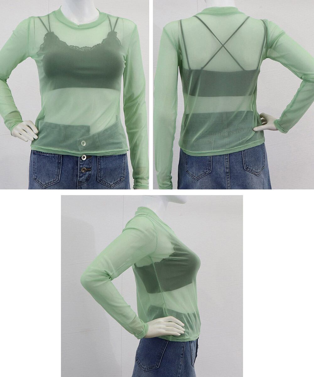 インナー トップス 軽い 春夏秋お洒落 シースルーブラウス